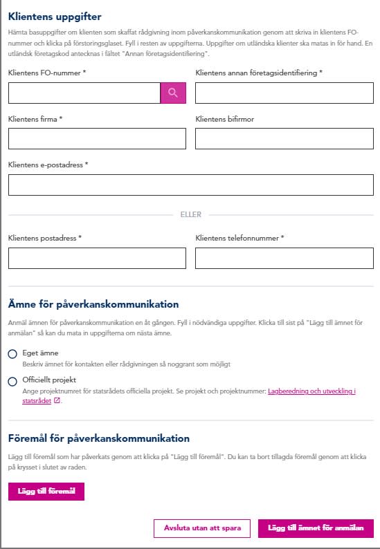 3. Anmäl rådgivning inom påverkanskommunikation