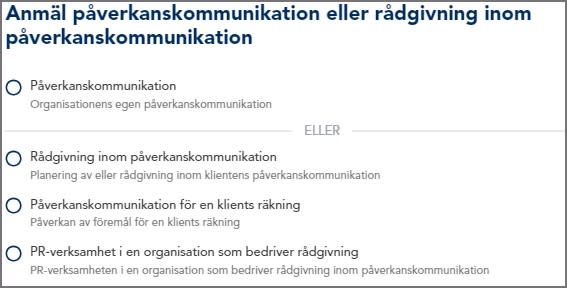 1. Välj rådgivning inom påverkanskommunikation som verksamhetstyp.